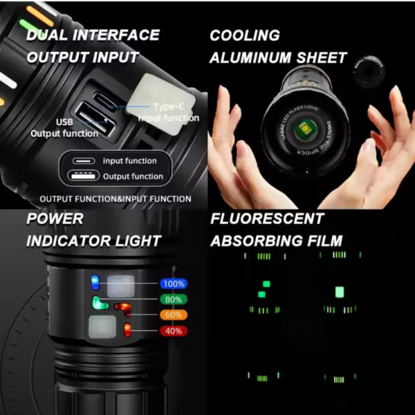FA-G02 е фенер, който комбинира здрав корпус, силна светлина, zoom функция, бързо зареждане, използване като външна батерия за други устройства – отличен вариант за всеки, който иска надежден прожектор.