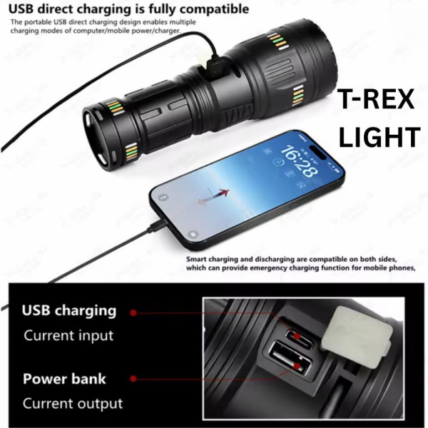 🔦 МОЩЕН АЛУМИНИЕВ LED ФЕНЕР T-REX LIGHT FA-G02 с функция външна батерия - GOZ