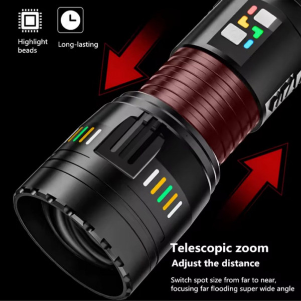 Идеален за търсене, къмпинг, работа на открито. Можете да промените разпръскването на светлината като издърпате предната част на фенера. Така лъчът става концентриран.