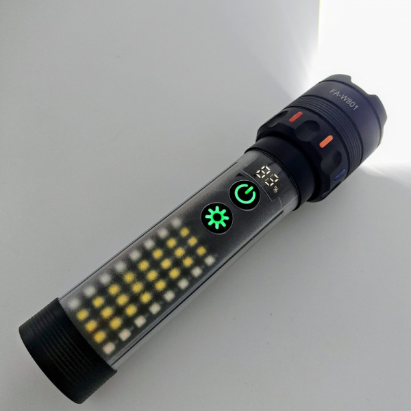 🔦 МОЩЕН ТАКТИЧЕСКИ LED ФЕНЕР COB LIGHT 3800– 3800LM, 35W, СЪС СТРАНИЧНО COB ОСВЕТЛЕНИЕ И TYPE-C ЗАРЕЖДАНЕ, блиц светлини - W801