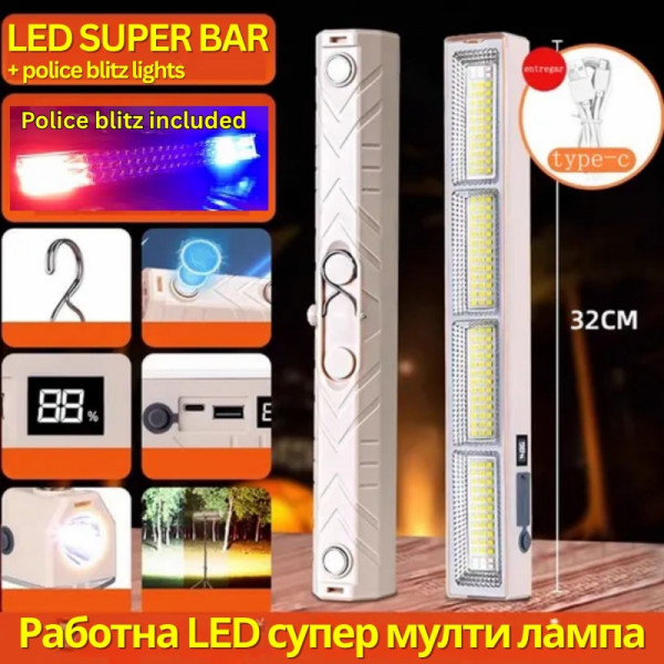 41 см. огромна многофункционална LED Работна Лампа всичко в едно - с полицейски блиц светлини, 5 режима, powerbank, фенер - T05-40/488