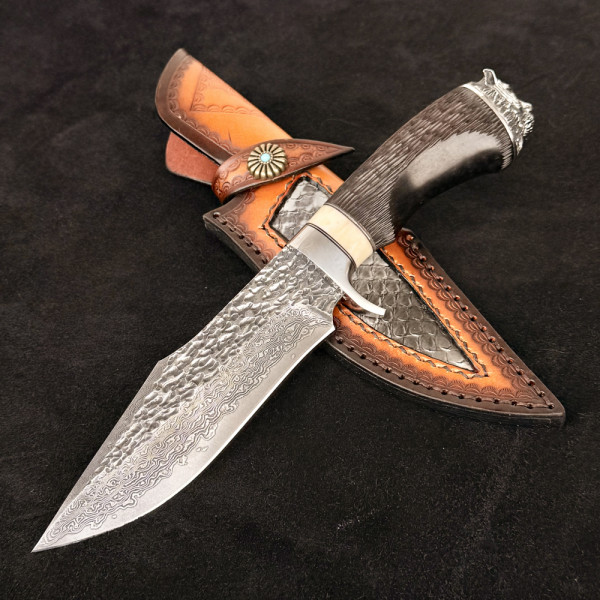 Агресивен японски ловен нож NIKASHI TIGER DAMASKUS - ръчна изработка