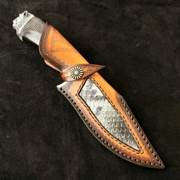 Кожена кания, шита и гравирана от телешки бланк и змийска кожа