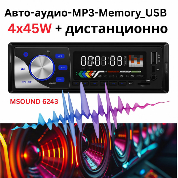 Авто радио MP3 плейър MSOUND 6243, стандартен размер, 1 DIN, с евробукса