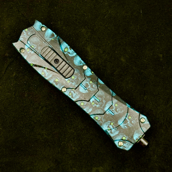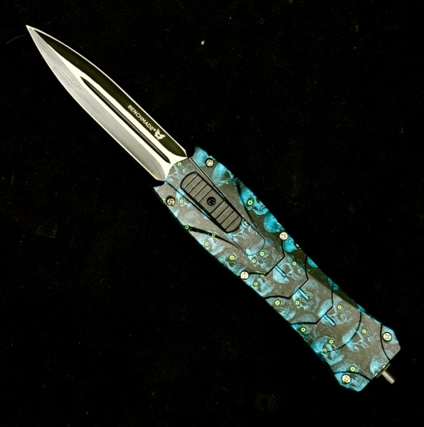 Автоматичен двуостър нож за самозащита BENCHMADE BLUE SKULL, стомана D2