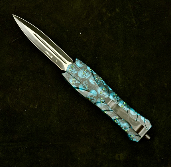 Автоматичен двуостър нож- кама за самозащита BENCHMADE BLUE SKULL