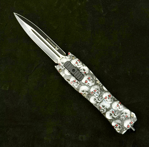 Автоматичен двуостър нож за самозащита BENCHMADE WHITE SKULL, стомана D2