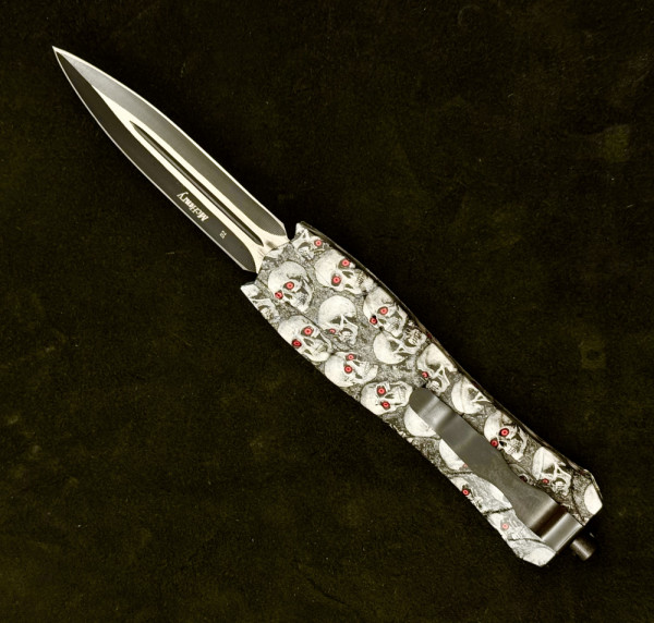 Автоматичен двуостър нож- кама за самозащита BENCHMADE WHITE SKULL