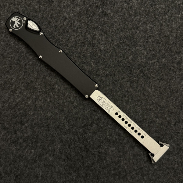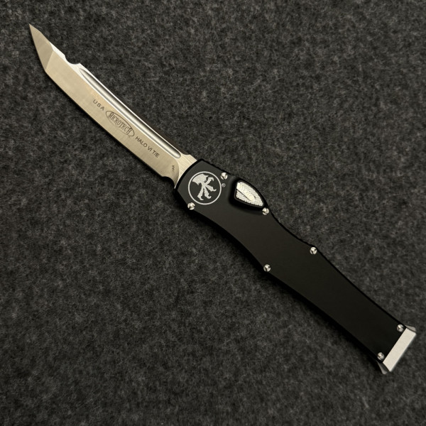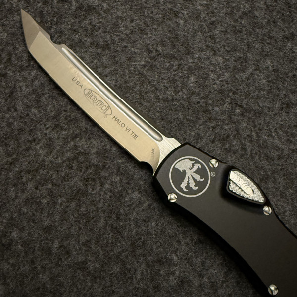 Halo VI на Microtech се отличава от предишните модели с допълнителни функции за безопасност и подобрен механизъм на дръжката за зареждане. Бутонът за изваждане е подобрен с вграден предпазител, за да се предотврати случайно разгръщане. Издърпайте мини-плъзгача и натиснете бутона с едно лесно движение, за да изстреляте мълниеносно острието. Подобрената дръжка за зареждане е изградена с двойни въртящи се заключващи механизми, които създават сигурно уплътнение в затворено положение. Дръжката е изработена от черна анодизирана сплав по Mil-Spec. Дръжката за зареждане е обработена с пясъкоструйка и е маркирана с логото на Microtech и датата на производство.