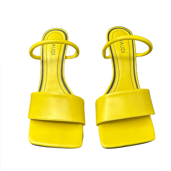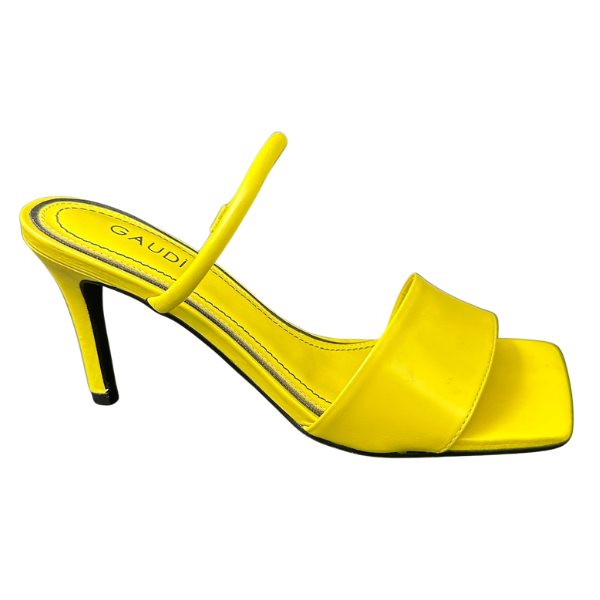 Сандали GAUDI в жълто – съчетание от елегантност и комфорт за летните дни. Изработени от висококачествен материал с минималистичен дизайн, квадратен връх и тънка каишка за стабилност. Токът е 8 см – изящен и удобен, идеален за ежедневие, официални поводи или вечерни излизания. Жълтият цвят носи свежест и лекота, лесно се комбинира с рокли, поли или панталони. Италиански стил и финес, които подчертават женствеността и правят всяка визия модерна и ефирна.