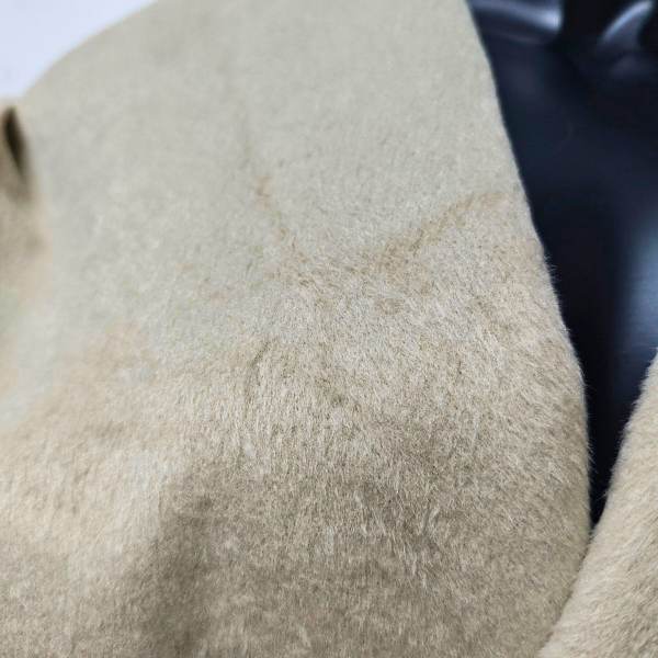 Материята е внимателно подбрана – 52% полиестер, 44% акрил и 4% вълна, което гарантира не само комфорт и топлина през студените дни, но и устойчивост на износване. Вълненият компонент придава естествена мекота и луксозен вид, а акрилът осигурява лекота и защита от деформации. Повърхността е изключително фина на допир – с ефект на деликатен кадифен мъх, който улавя светлината и придава на палтото мек, топъл блясък.