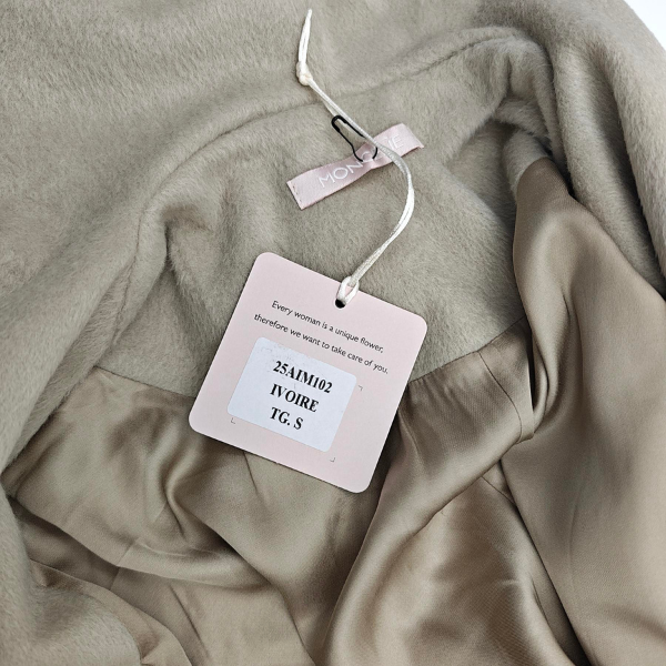 Палтото е в класически италиански размер S (Small) и е подходящо за ежедневието, както и за специални поводи. Комбинира се чудесно с високи ботуши, елегантни панталони или рокли. Цветът ivory (слонова кост) е универсален и изключително стилен – съчетава се както с неутрални, така и с контрастни тонове. Това палто е създадено за жената, която цени финото майсторство, висококачествените материи и неподвластния на времето стил. MONCELÌE вярва, че „всяка жена е уникално цвете“ – и това палто е създадено да подчертае именно тази уникалност.