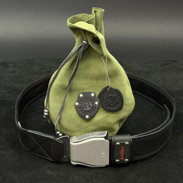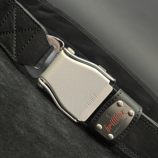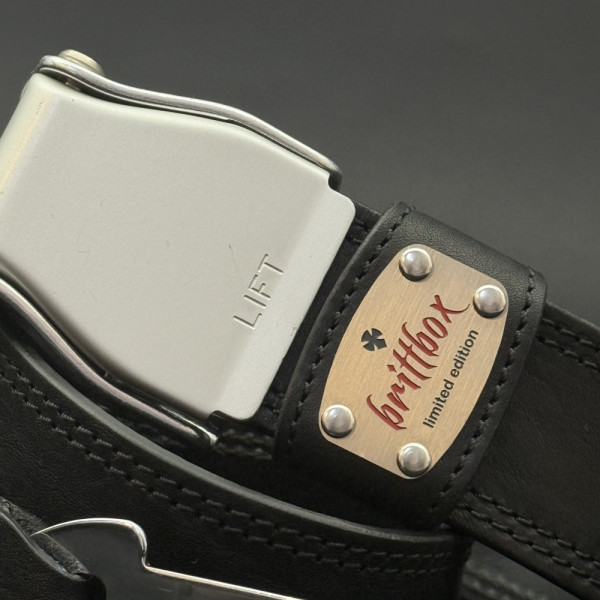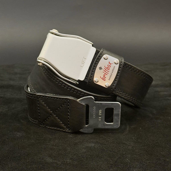 Единствен по рода си авио колан BRITTBOX BELT BLACK-BLACK с истинска самолетна тока от колан BOEING, телешки бокс, подаръчна торба от напа