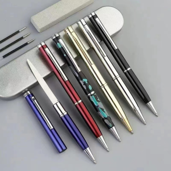 Мини кама, скрита в елегантна писалка или пък: елегантен химикал със скрит нож.