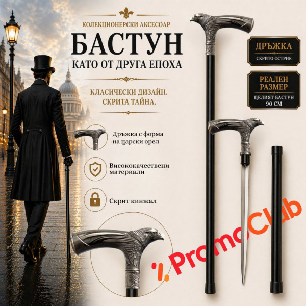 Великолепен кух бастун с кинжал по традиционен британски модел, но с модерна дръжка метална глава на царски орел.