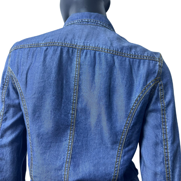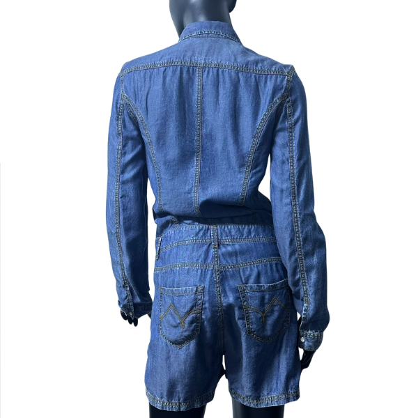 Изработен от мек деним, този гащеризон е перфектната комбинация от комфорт и модерен дизайн. С дълъг ръкав, яка и практични джобове, той е чудесен избор както за ежедневието, така и за по-специални поводи.