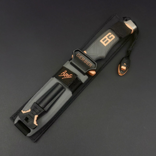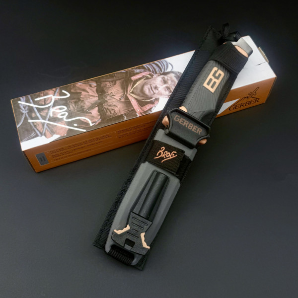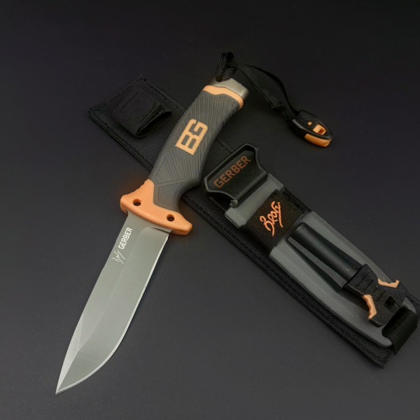 Голям нож за оцеляване/ловен нож GERBER Bear Grylls с точило на канията, магнезиева запалка и свирка в тактическа кания, за лов