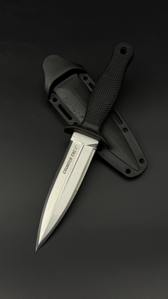 Ножовете Counter TAC са проектирани с тази проста философия. Остриетата с пълна опашка са изработени от красиво обработена с камък неръждаема стомана AUS-8, която е вакуумно термично обработена и закалена при температури под нулата за здравина. Те са кухи и завършват със здрав, но остър като игла връх, идеален за лесно проникване, и разбира се, острието е остро като бръснач. Ергономичният дизайн на ръкохватката Kray-Ex е удобен и адаптивен, а дълбоко текстурираната повърхност и двойният предпазител ще гарантират, че ножът няма да се изплъзне от ръката ви при никакви обстоятелства. И накрая, всеки Counter TAC се доставя с най-съвременен калъф Secure-Ex, комплектован с подвижна щипка за ботуш/колан и слотове за закрепване.