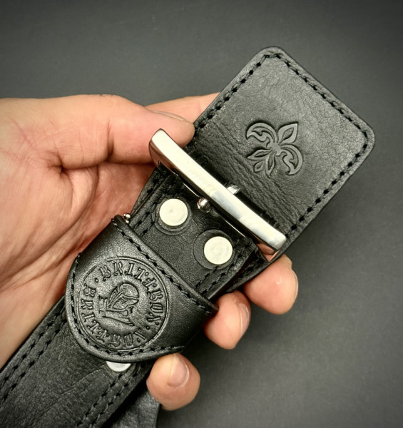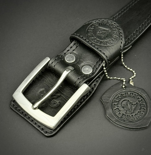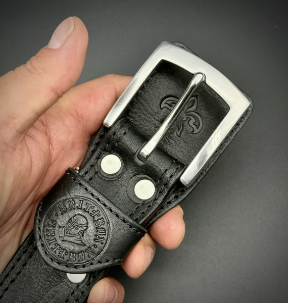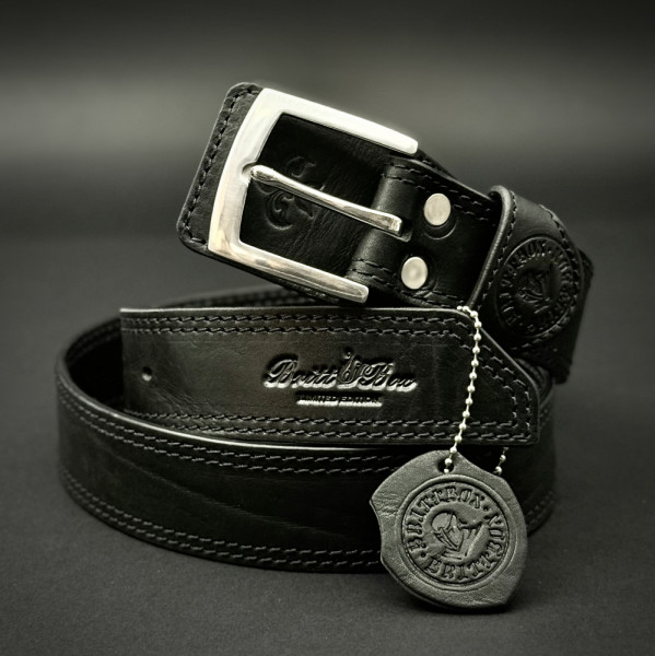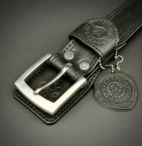 Класически мъжки колан BRITTBOX CUSTOM CLASSIC BLACK 40mm/135 sm, телешки бланк и неръждаема стомана- качествен ТОП подарък