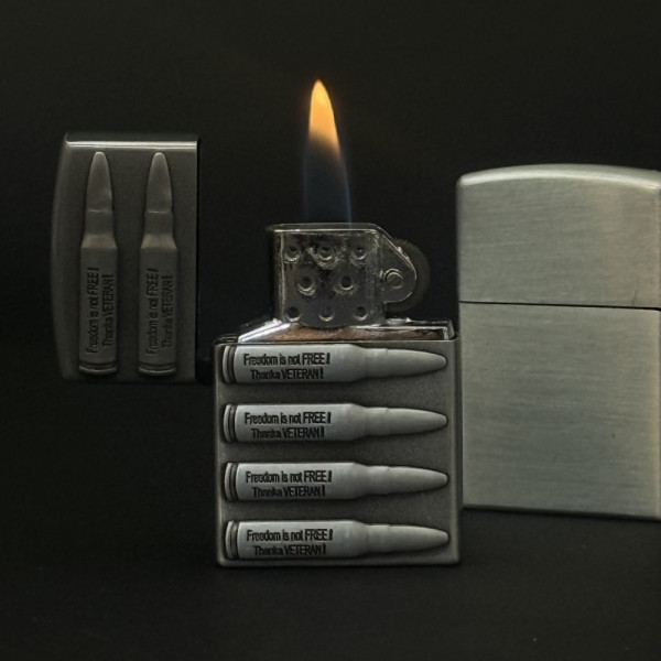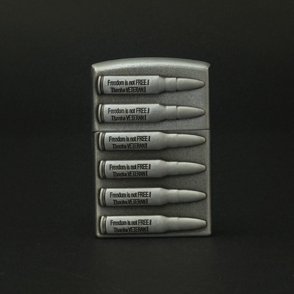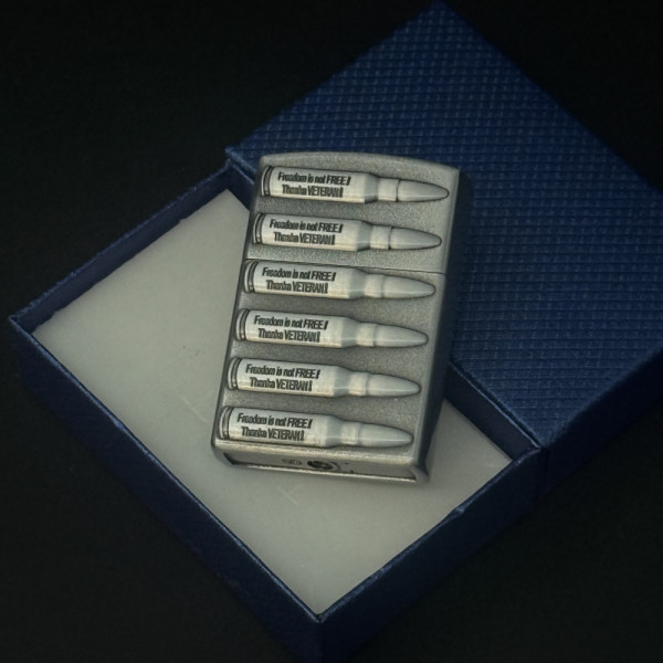 Оригинална тематична запалка SIX BULLETS в метален корпус и класически "ZIPPO" дизайн. С газ и камъче. Доставя се в подаръчна кутия, готова за поднасяне