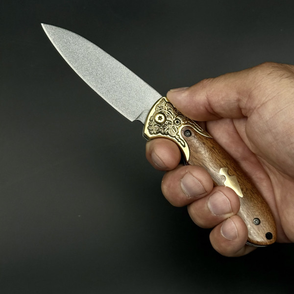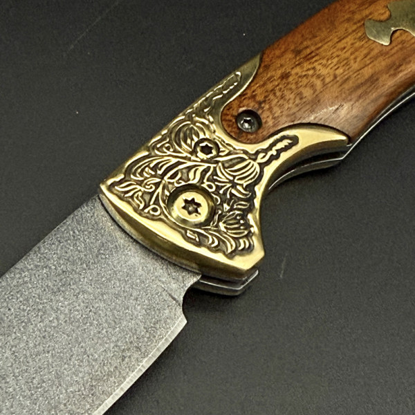 1149 Отзива за Компактен масонски сгъваем нож FREEMASONS 101, стомана VG10, месинг и дърво