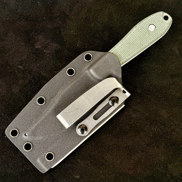 Компактен агресивен немски ловен нож, фултанк от здрава стоманаD2 с висока твърдост, акгресивно острие, дръжка G10 и тактическа кания KDEX с клипс за колан