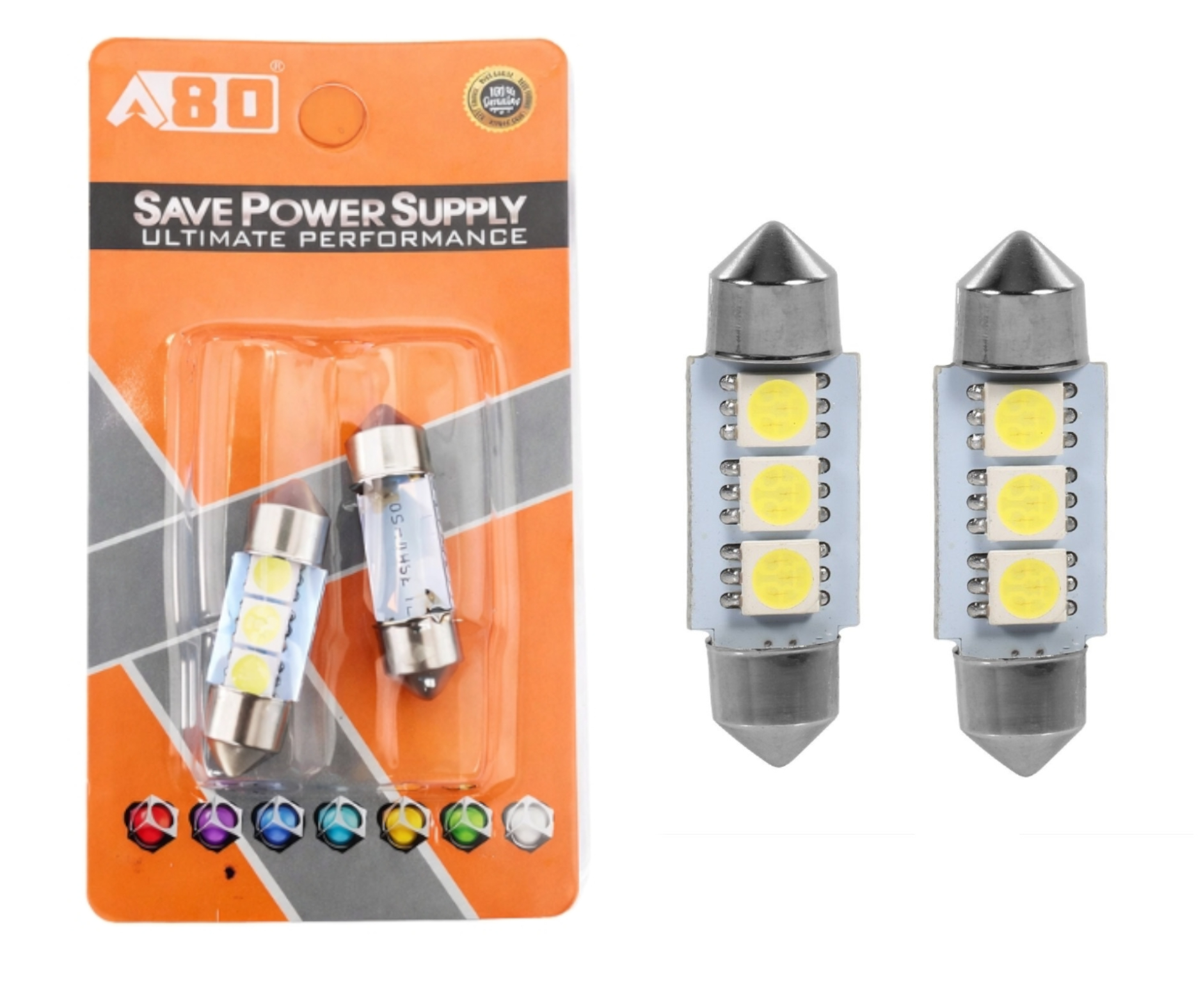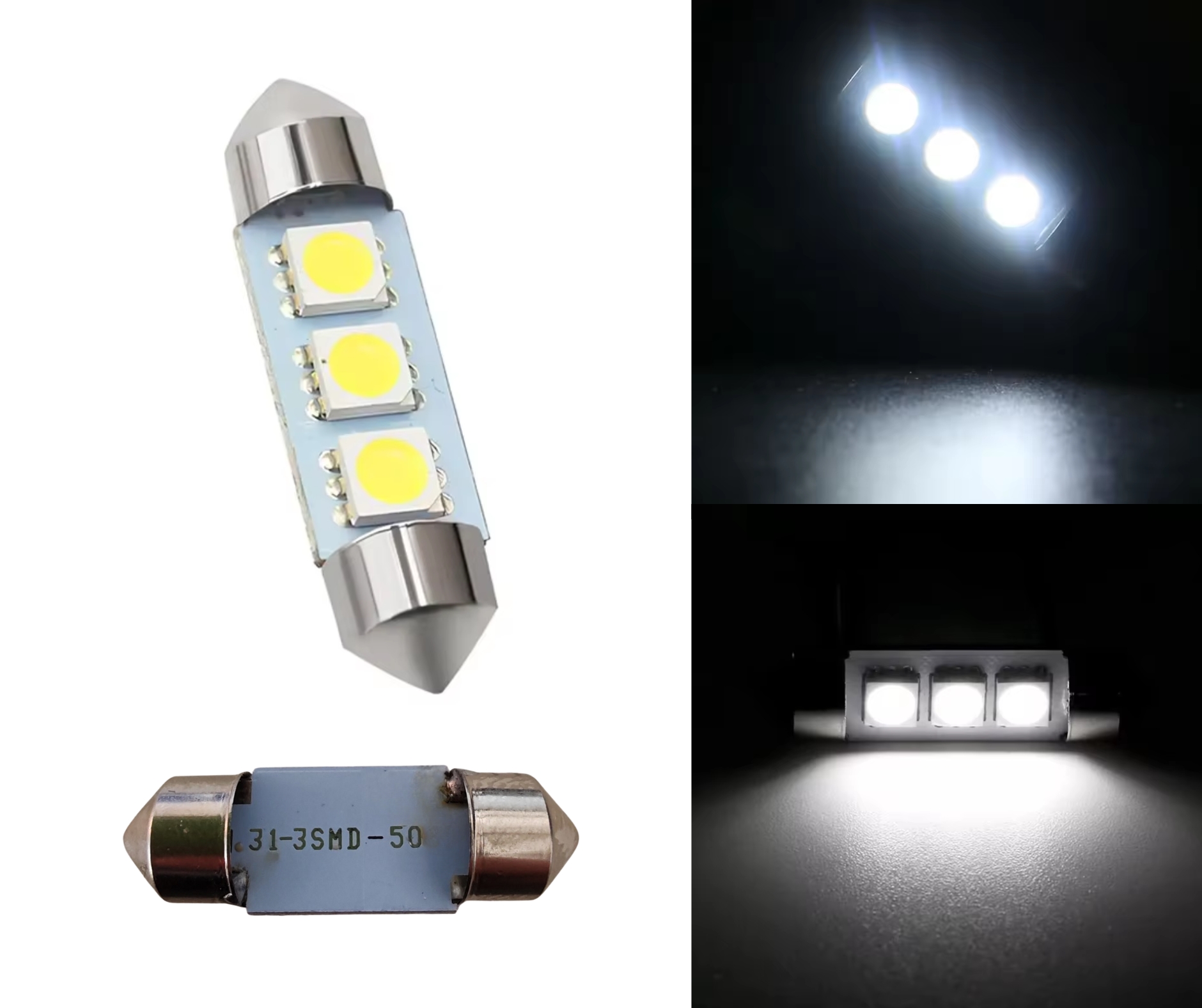 Компактна и ефективна LED крушка тип C5W (festoon), предназначена за интериорно и допълнително автомобилно осветление.Оборудвана с 3 висококачествени SMD 5050 LED диода, тя осигурява силна и равномерна бяла светлина при ниска консумация на енергия и минимално отделяне на топлина.Директен заместител на стандартните халогенни крушки, с по-дълъг експлоатационен живот и подобрена видимост.