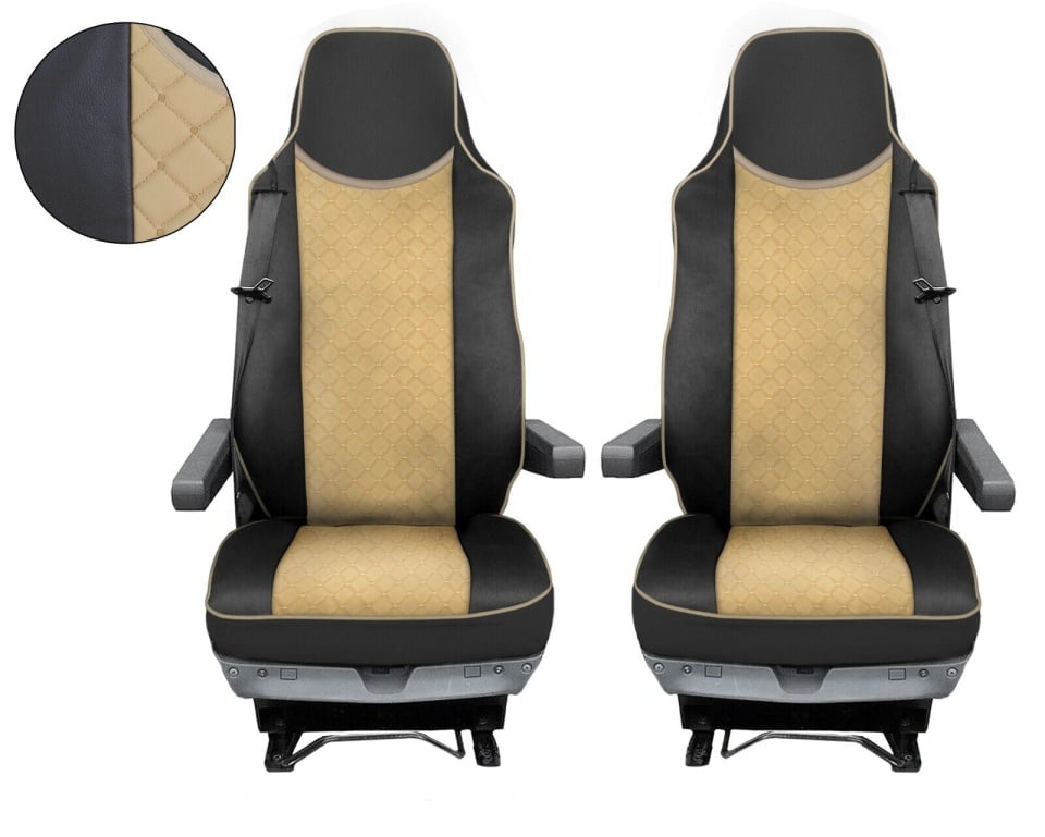 Комплект 1+1 тапицерия от еко кожа за MAN TGX 2015-2020 - бежово-черно