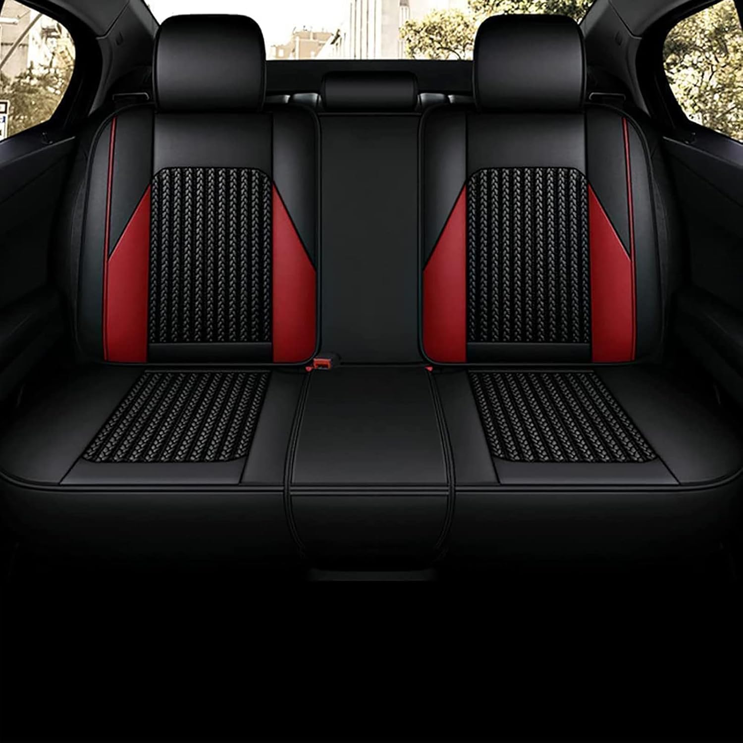 Комплект Луксозна универсална тапицерия кожа с текстил, Черна с червен и бял акцент, За Предни и Задни седалки
