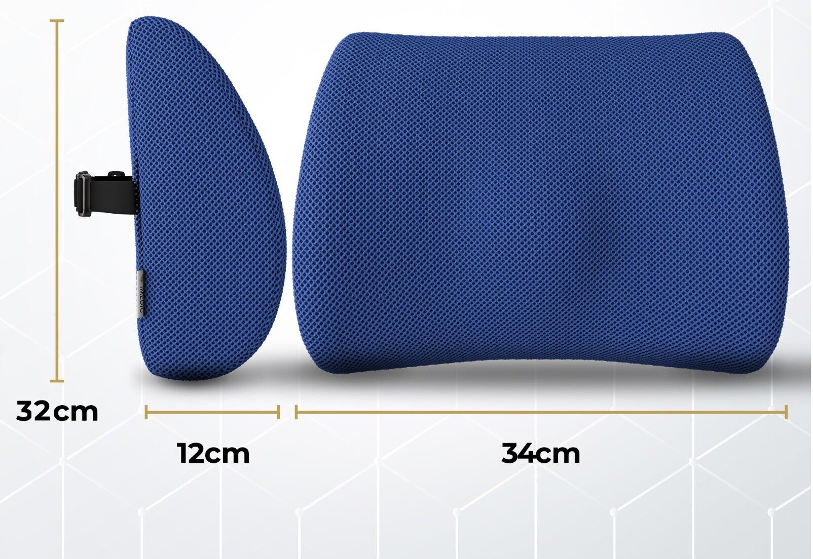 Включва лумбална възглавница с анатомична форма и ортопедична възглавница за седене, изработени от висококачествена мемори пяна.