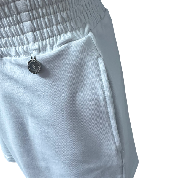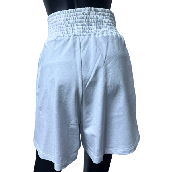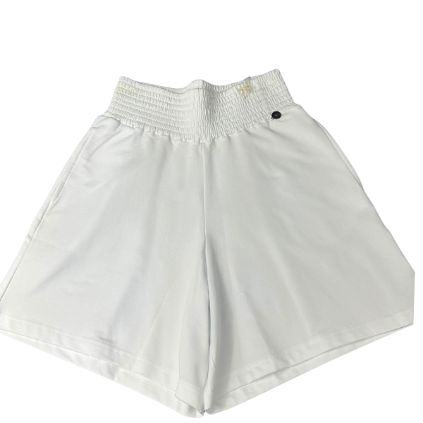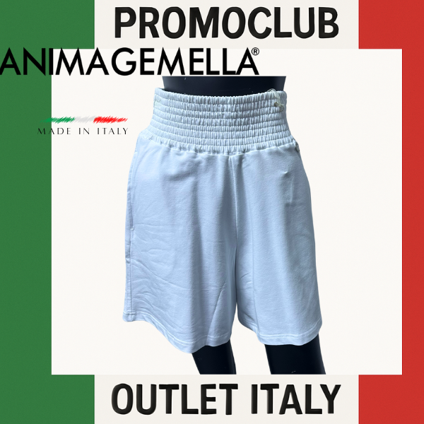 🤍 Елегантен минимализъм и комфорт! Италиански дамски къс панталон ANIMAGEMELLA в бяло – изработен от 100% памук с висока, еластична талия за перфектно прилягане и свобода на движение. Мек и дишащ, с джобове и лого-аксесоар за акцент. Идеален избор за лято, плаж, разходка или градска визия