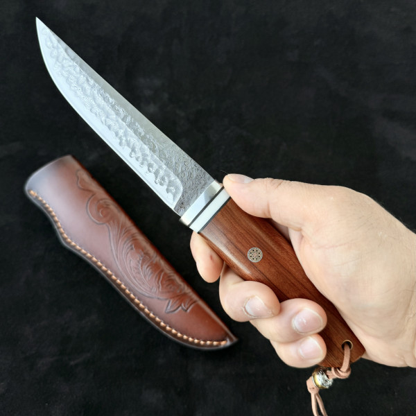 1149 Отзива за Немски ловен нож Der HUNT 636 DAMASKUS, стомана VG10 67 слоя, дръжка орех, кожена кания