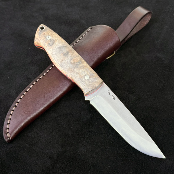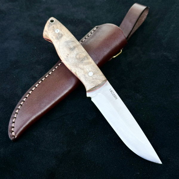 Красив, удобен компактен висококачествен ловен нож- страхотна шведска сомана, чудесно дърво и кожа - съвършен ловен нож
