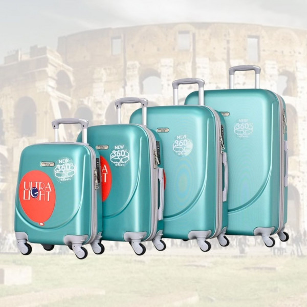 НОВО: 4бр Куфари 1217-4 Turquoise ABS,четири въртящи колелца, заключване с цифров шифър, комплект 4бр.