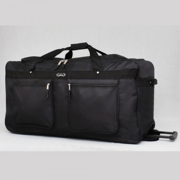 Огромен текстилен сак с теглич. Удобен и подходящ за целия Ви багаж. Здрав текстил, който ще съхрани вещите ви. Плавното движение на колелцата осигурява висока подвижност, дори и при препълнен сак. Двете шини на дъното го укрепват и дават допълнителна сигурност при пътувания със самолет или кола. Удобно разпределение в едно голямо отделение и два дълбоки предни джоба.