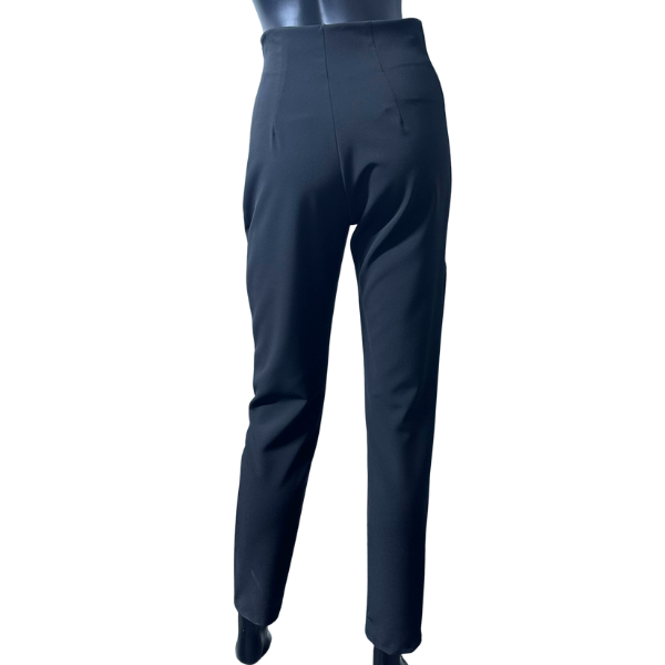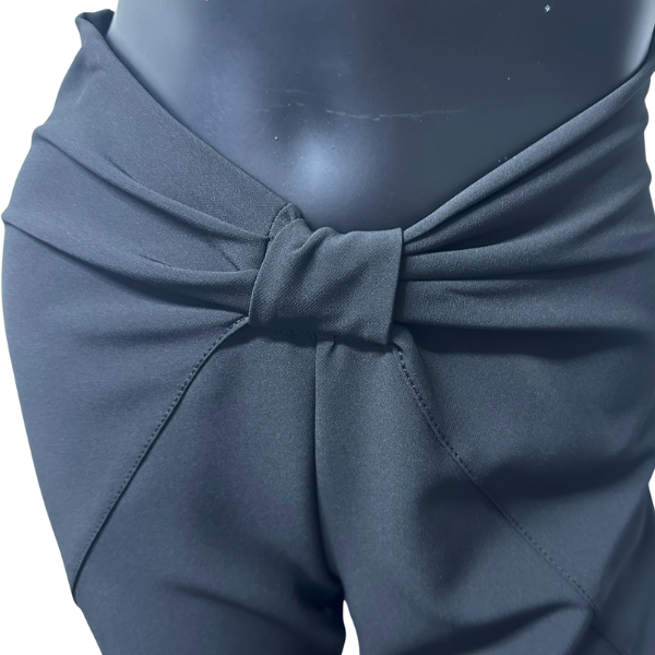 Класически черен цвят, с елегантна висока талия и декоративен възел отпред, който придава модерен и изискан акцент. Закопчава се с цип отстрани за перфектно прилягане. Материята е комбинация от памук и еластан – удобна, еластична и подходяща както за офис визия, така и за вечерни събития. Лесен за съчетаване с ризи, топове и сако. Идеален избор за дами, които ценят италианския стил и качеството.