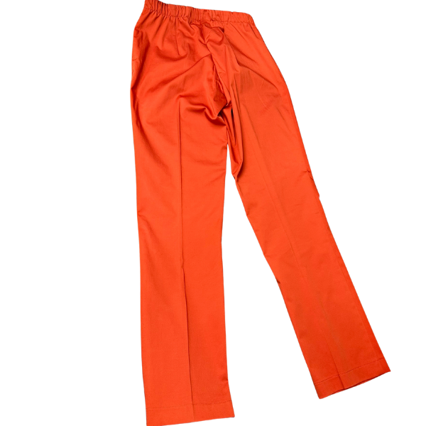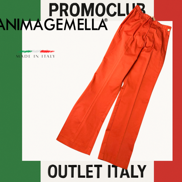🧡 Италиански стил и комфорт в едно! Елегантен панталон в цвят оранжево, с изчистена кройка и еластична талия за допълнително удобство. Декоративно метално копче с логото ANIMAGEMELLA добавя луксозен акцент.
