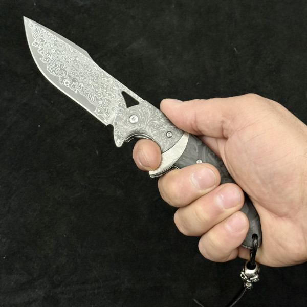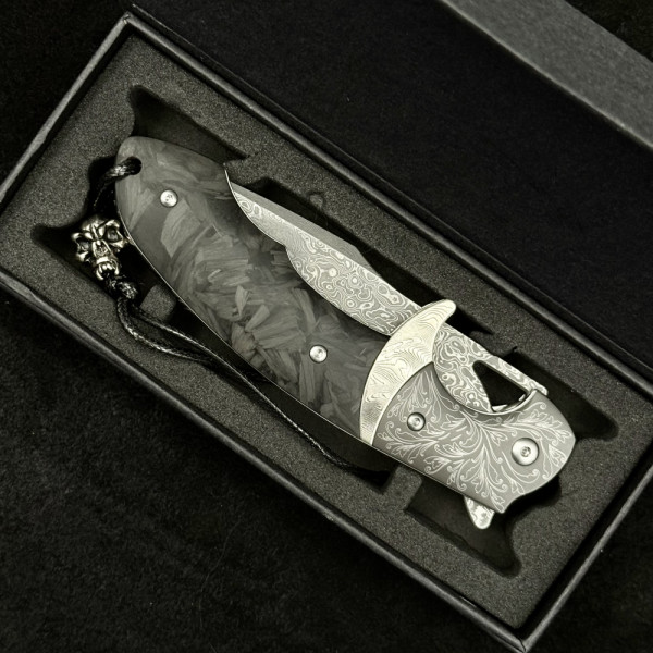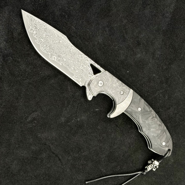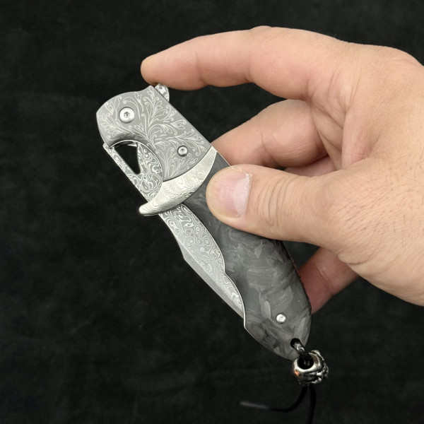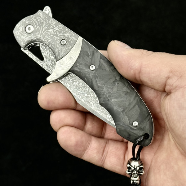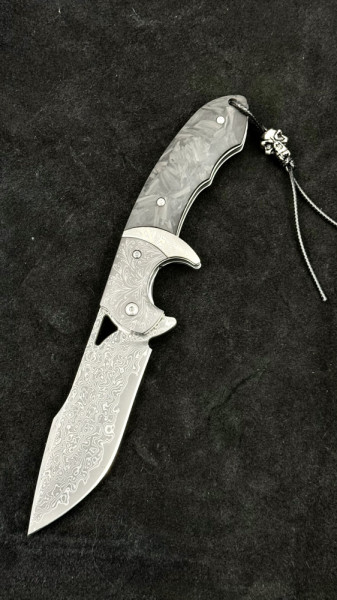 Полуавтоматичен сгъваем ТОП нож JAP SKULL DAMASKUS МК-14 с палец за отваряне