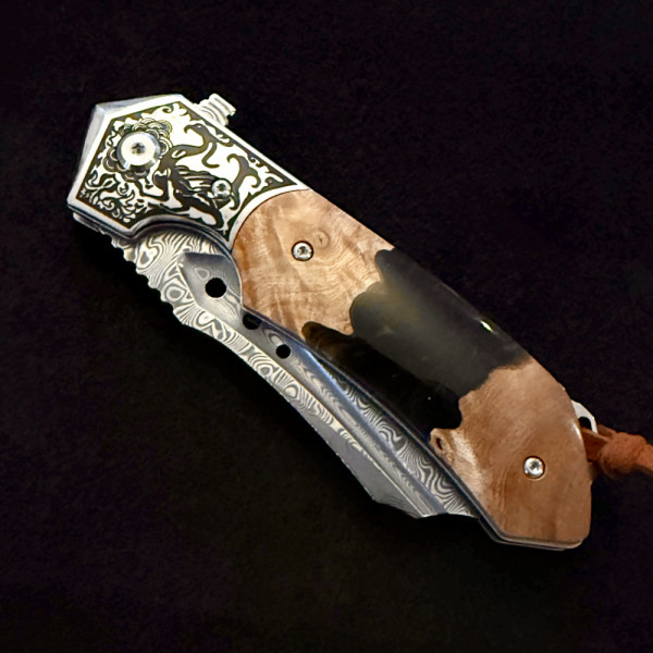 Полуавтоматичен сгъваем ТОП нож JAP SPIDER DAMASKUS МК-16 с палец за отваряне