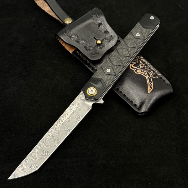 Полуавтоматичен сгъваем ТОП нож JAP TANTO DAMASKUS МК-3 с палец за отваряне, стомана VG10 damask, дръжка G10, кобур