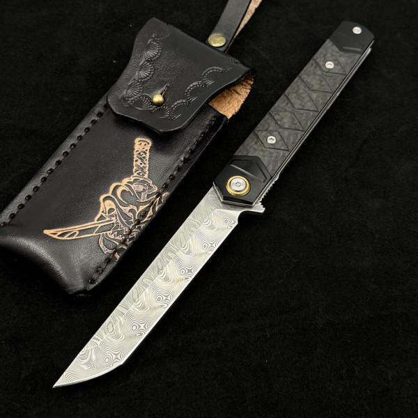 Полуавтоматичен сгъваем ТОП нож JAP TANTO DAMASKUS МК-3 с палец за отваряне