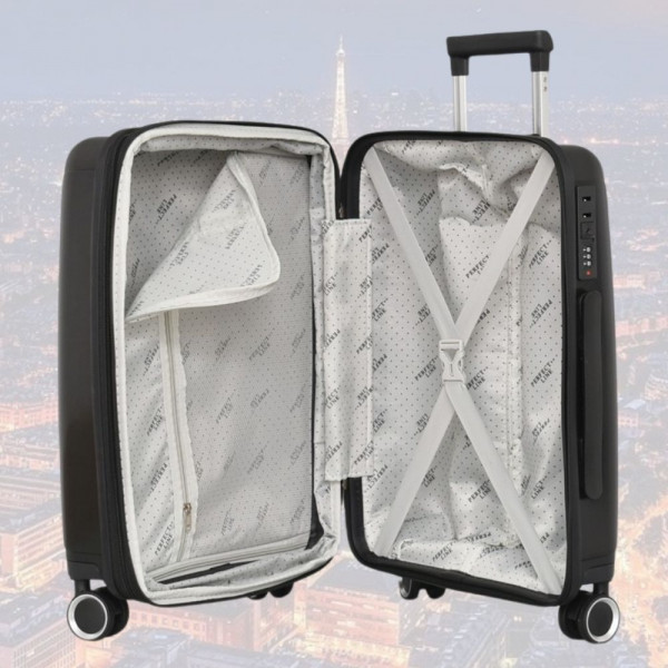 1149 Отзива за Практичен авио куфар с четири колелца, въртящи се нa 360 градуса, със заключане с шифър, полипропилен - GRAPHITE 2333 20 инча