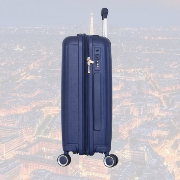 Практичен авио куфар с четири колелца, въртящи се нa 360 градуса, със заключане с шифър, полипропилен - DARK BLUE 2333 20 инча