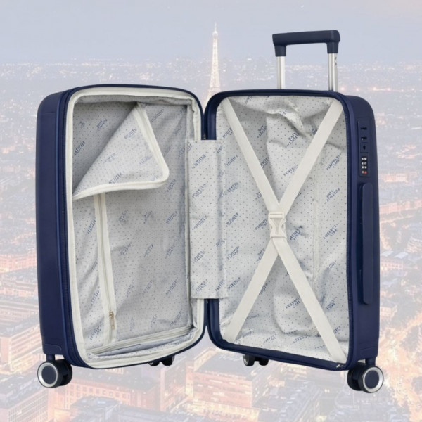 1149 Отзива за Практичен авио куфар с четири колелца, въртящи се нa 360 градуса, със заключане с шифър, полипропилен - DARK BLUE 2333 24 инча