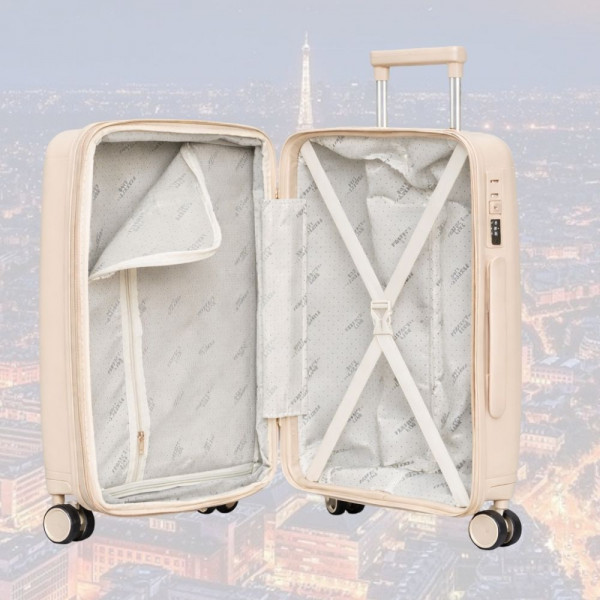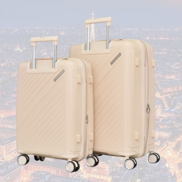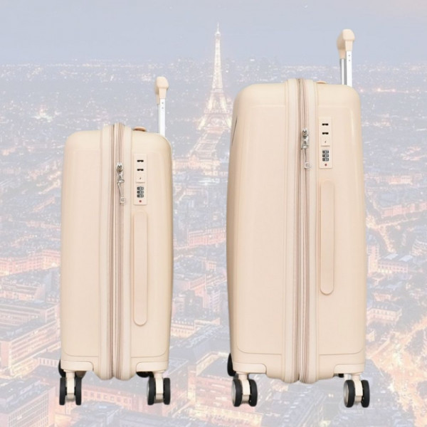 Практични авио куфари с четири колелца, въртящи се нa 360 градуса, полипропилен - CREAM 2333 20+24 инча