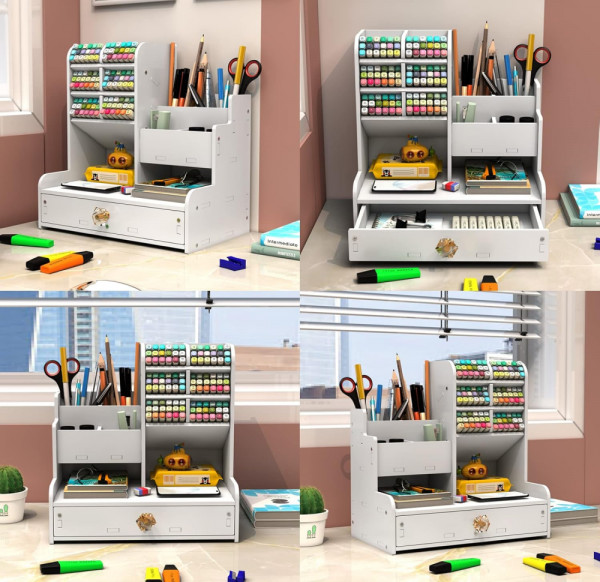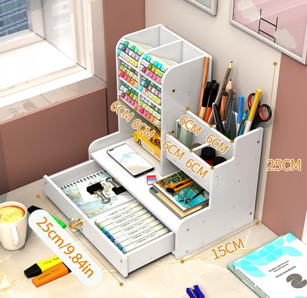 Подреди работното си пространство с елегантност! Този дървен многофункционален органайзер е изработен от висококачествен плътен материал, устойчив на износване, и е идеален за учители, ученици, офис служители или всеки, който иска подредено и уютно бюро.