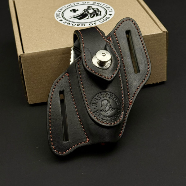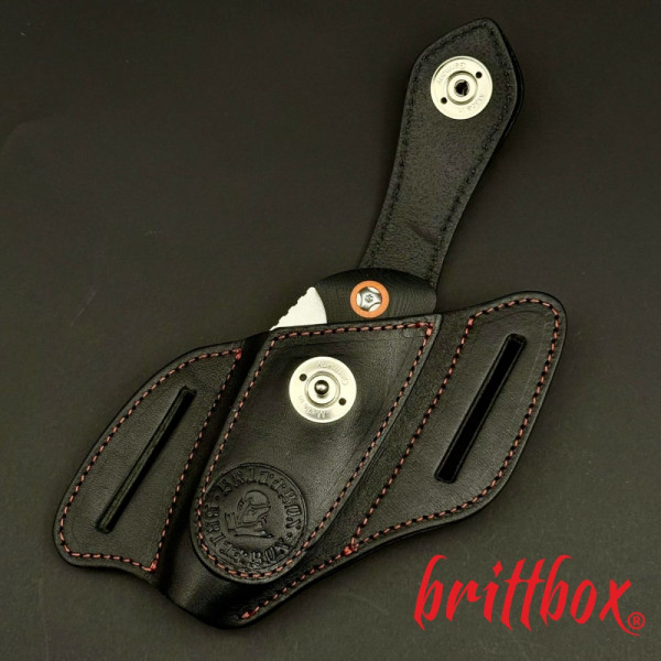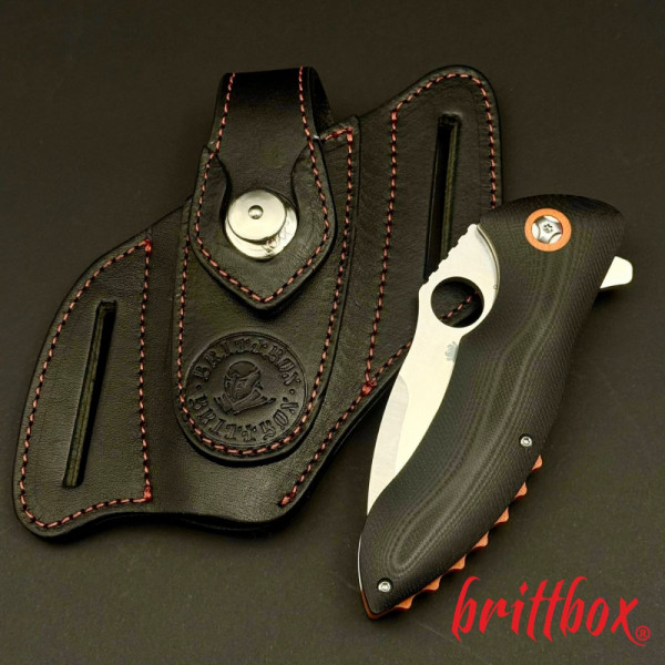 Премиум кожен кобур-кания BRITTBOX BBH™ ORANGE LINE с полуавтоматичен сгъваем нож SPYDERCO