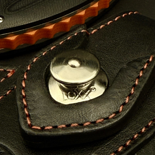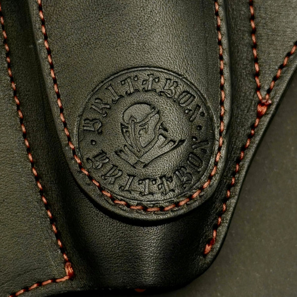 Кобурът е с патентован дизайн с дясна наклонена фиксация и осигурителен кожен капак със заключване