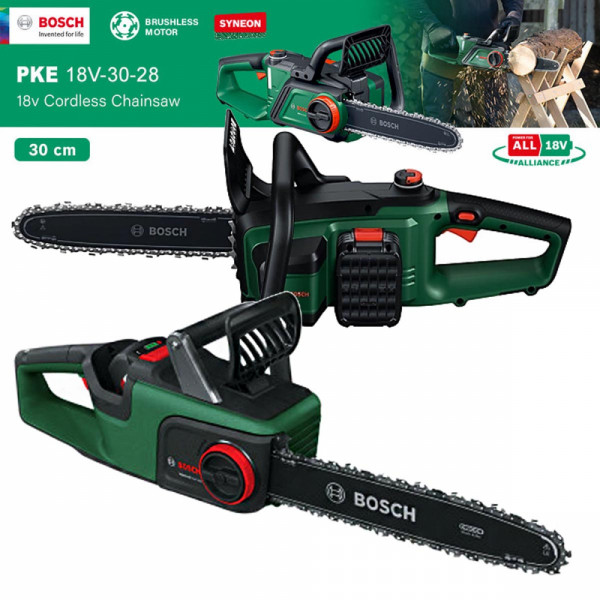 Акумулаторната резачка BOSCH PKE 18V-30-28 – Solo е универсален верижен трион, създаден за бързо и лесно рязане на големи клони и трупи при работа в двора и около дома. Машината осигурява продължително и равномерно рязане дори при по-натоварени задачи благодарение на управлението OptiCut, което автоматично адаптира мощността според натоварването. Безчетковият мотор с висок въртящ момент гарантира бърз напредък при рязане както на меко, така и на твърдо дърво със среден до голям диаметър. Концентричната SDS система позволява лесно опъване и смяна на веригата без инструменти, което прави поддръжката бърза и удобна. Резачката използва Syneon технология за оптимално управление на енергията и максимално време на работа с едно зареждане. BOSCH PKE 18V-30-28 е част от системата POWER FOR ALL ALLIANCE и работи с една акумулаторна батерия, съвместима с широка гама инструменти, което я прави практично и ефективно решение от серията на BOSCH. Доставя се без батерия и зарядно устройство!