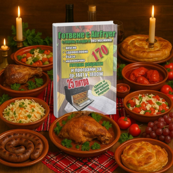 Първата фурна/фритюрник с горещ въздух без мазнина ZP 1441 V - 2в1, 25Л, 1800W, 11 функции и КНИГА със 170 рецепти на български